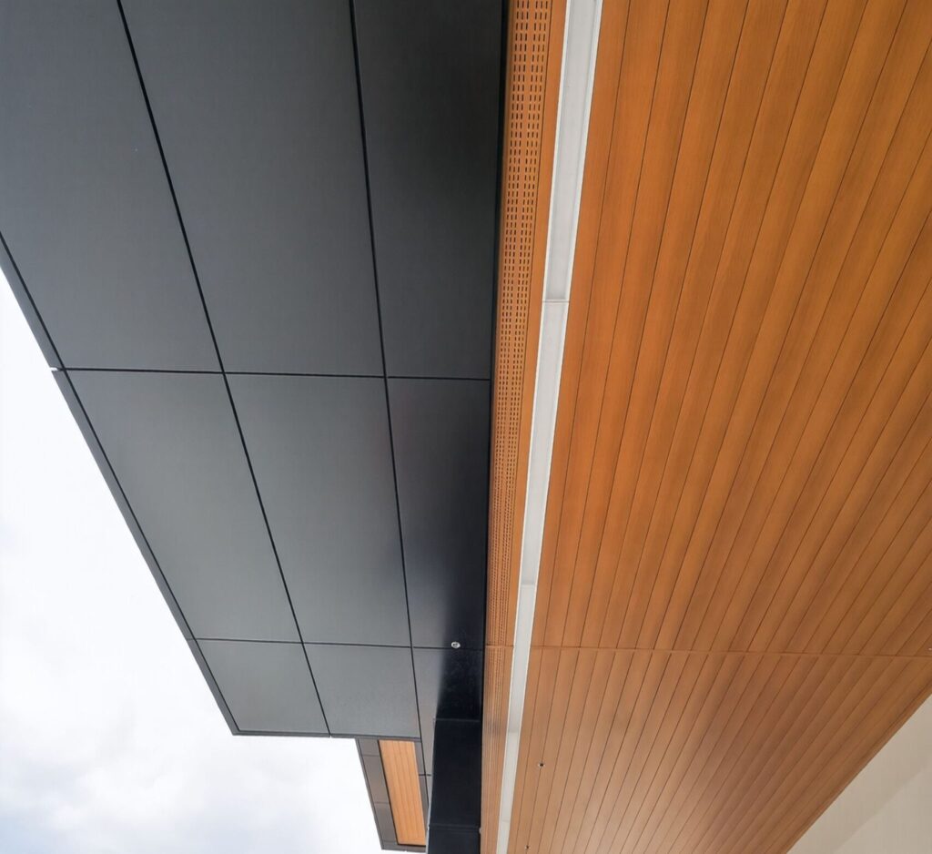 Parallel’s products are simple to install, making it easier than ever to add woodgrain or solid color aluminum soffits to your next project. Our offerings include a variety of wood-look metal soffit options, seamlessly integrating with building designs to enhance aesthetic appeal.